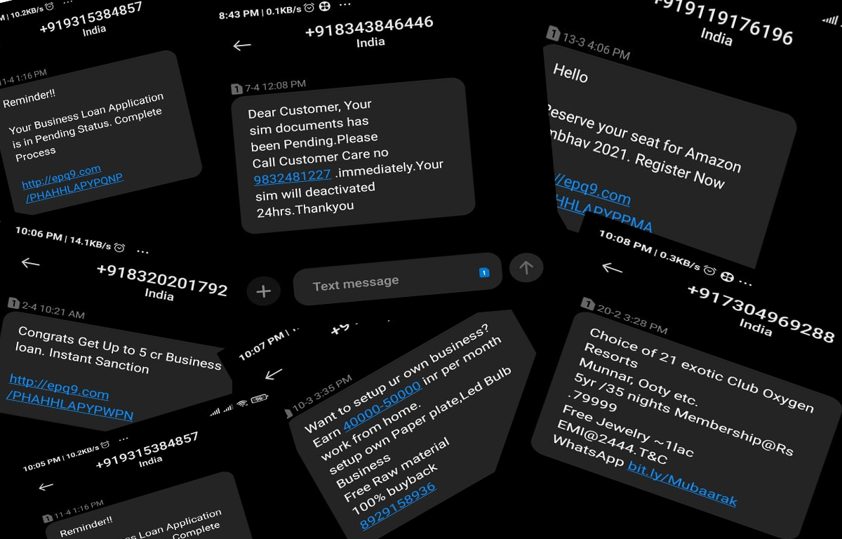 It is to be noted that, after the introduction of SMS template system with the help of DLT platform working in block chain technology, fraudsters started to send spam messages from personal mobile numbers instead of SMS headers like – CP-SMSFST, AD-VIRINF, CP-BLMKND, BP-ITLINN etc.